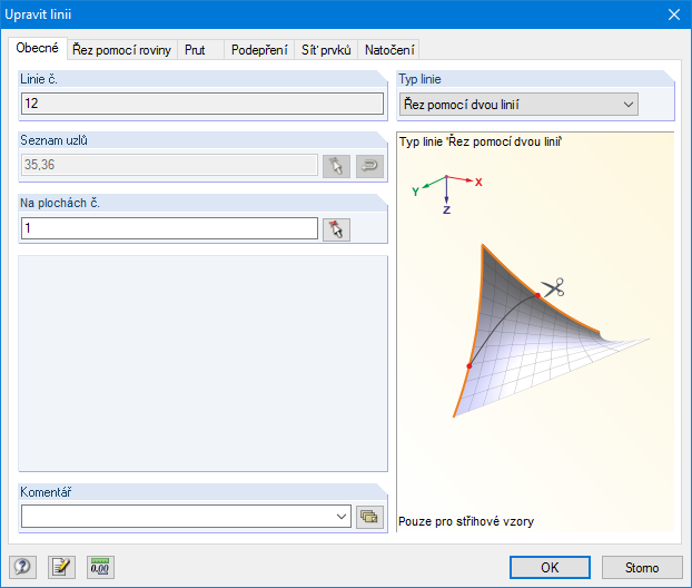 - Zadání střihových vzorů pomocí hraničních linií, které nemusí být nutně spojeny