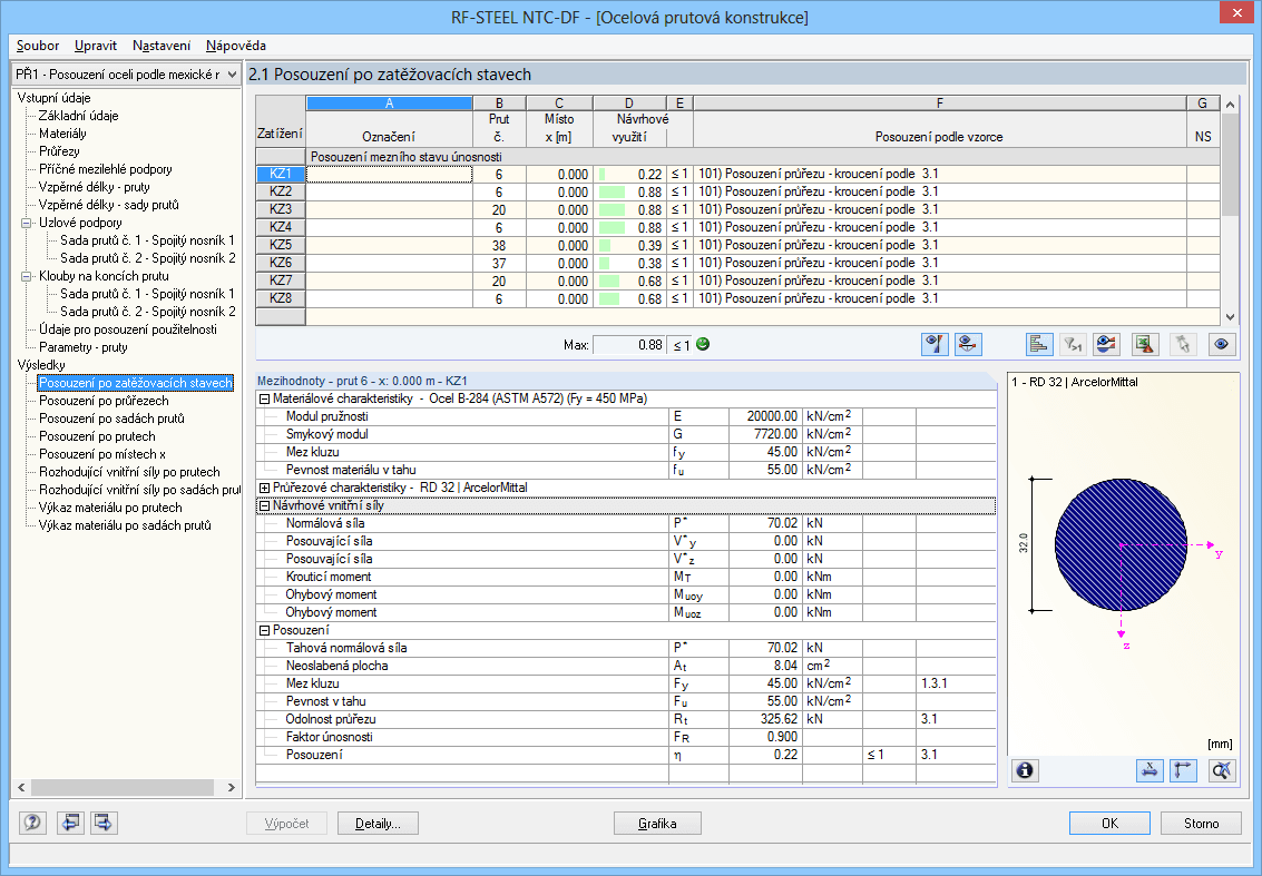 - Automatické převzetí údajů o konstrukci a okrajových podmínek z programu RSTAB
