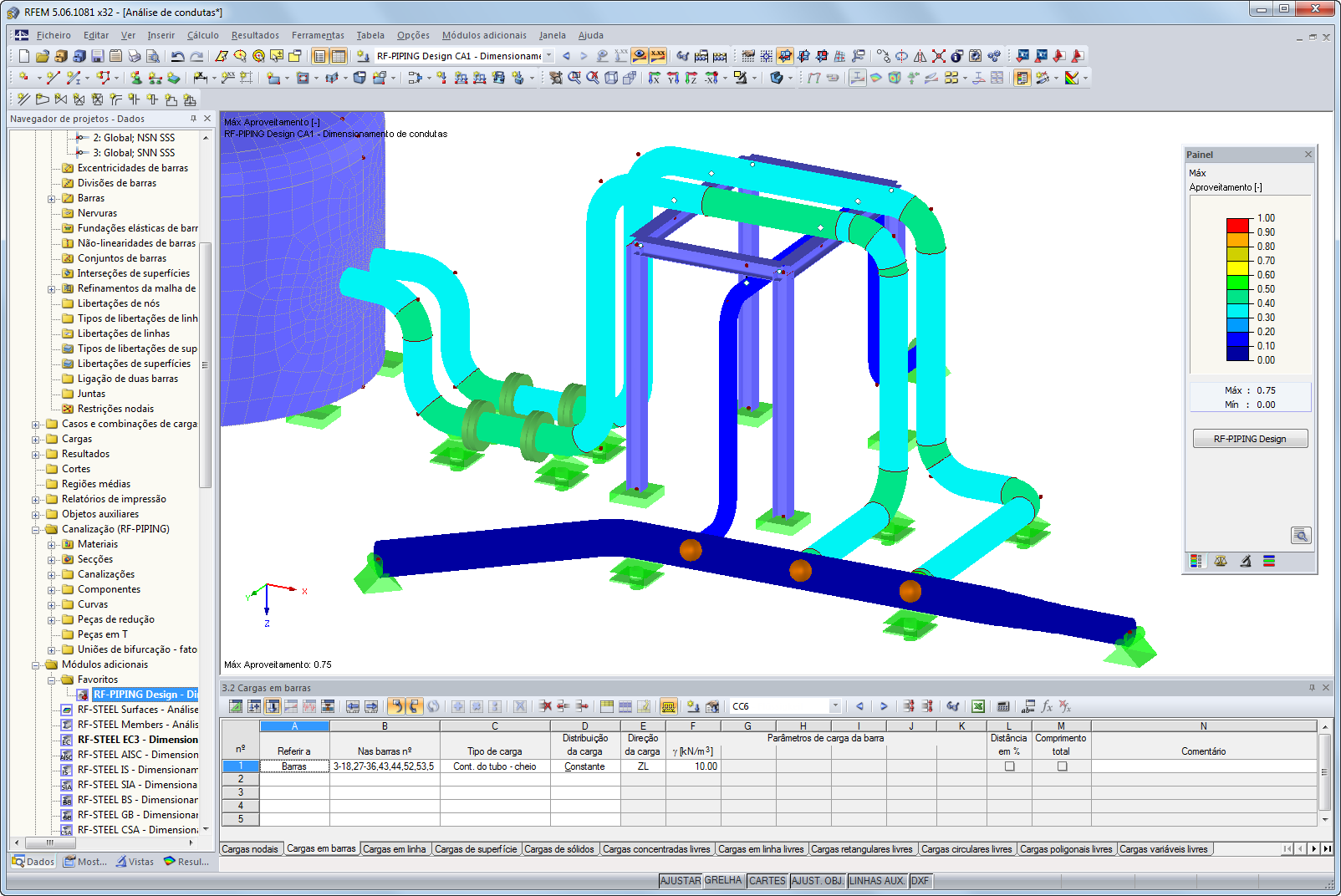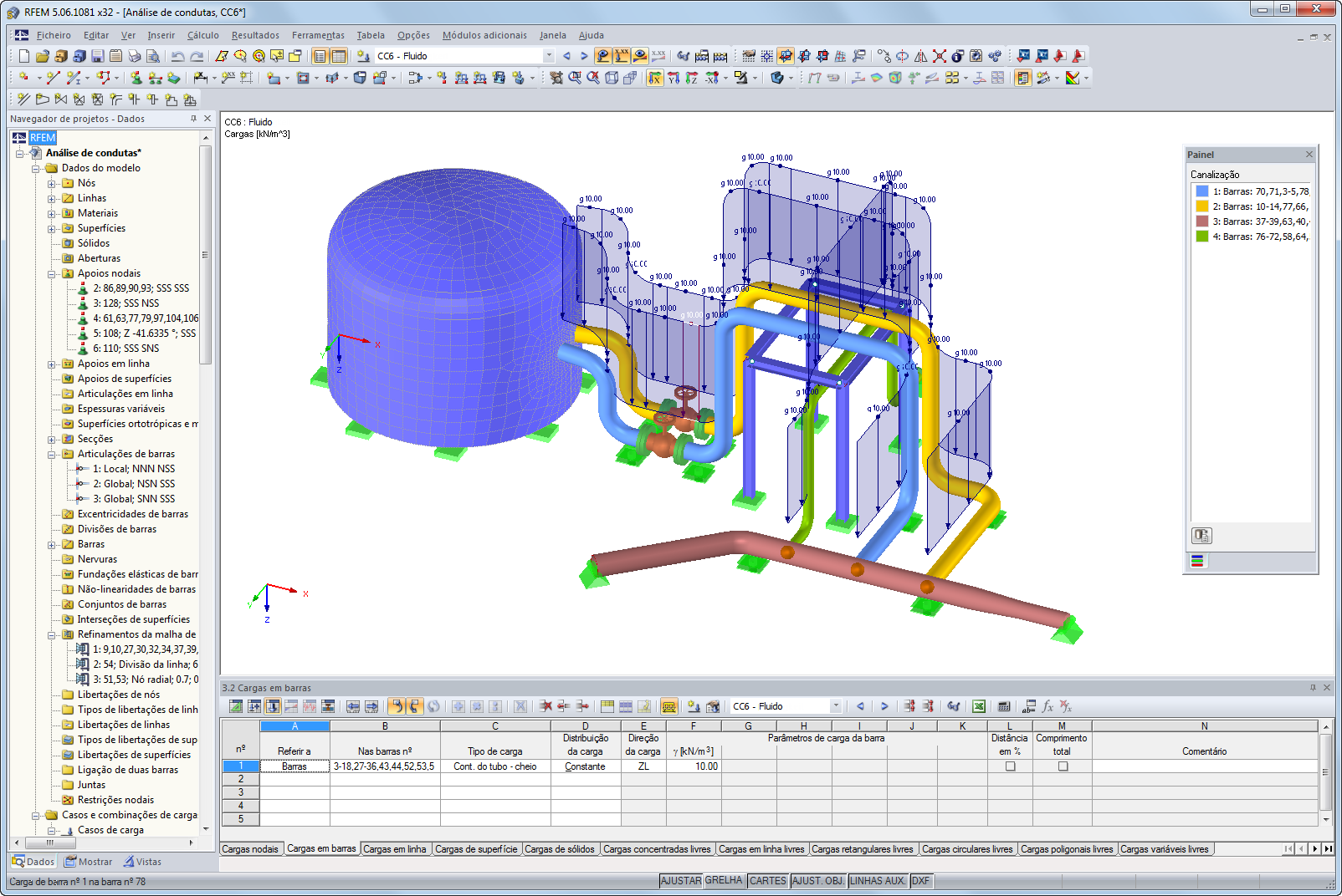 - Visualização ilustrativa das condutas e dos componentes na janela gráfica do RFEM