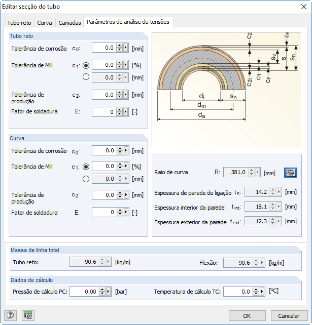 - Consideração de deformação e levantamento devido à pressão (efeito de Bourdon)