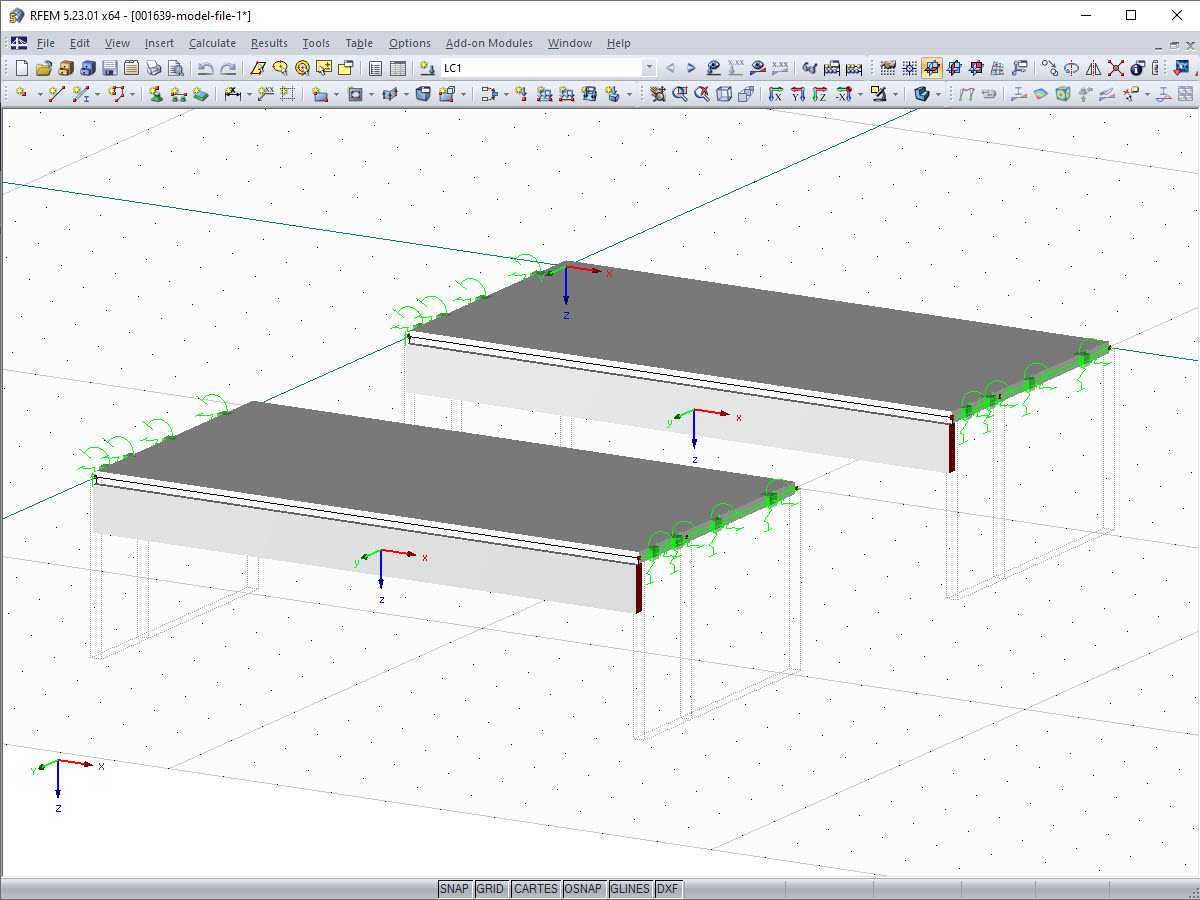 Экспорт нелинейной жесткости в конструкции с трещинами можно включить в настройках нелинейного расчета в дополнительных модулях RF-CONCRETE Members или RF-CONCRETE Surfaces. V dialogu Upravit zatěžovací stavy a kombinace pak pro vybrané kombinace zaškrtneme další možnosti. Objeví se nová záložka, kde je možné přenos tuhostí z přídavných modulů zapnout.