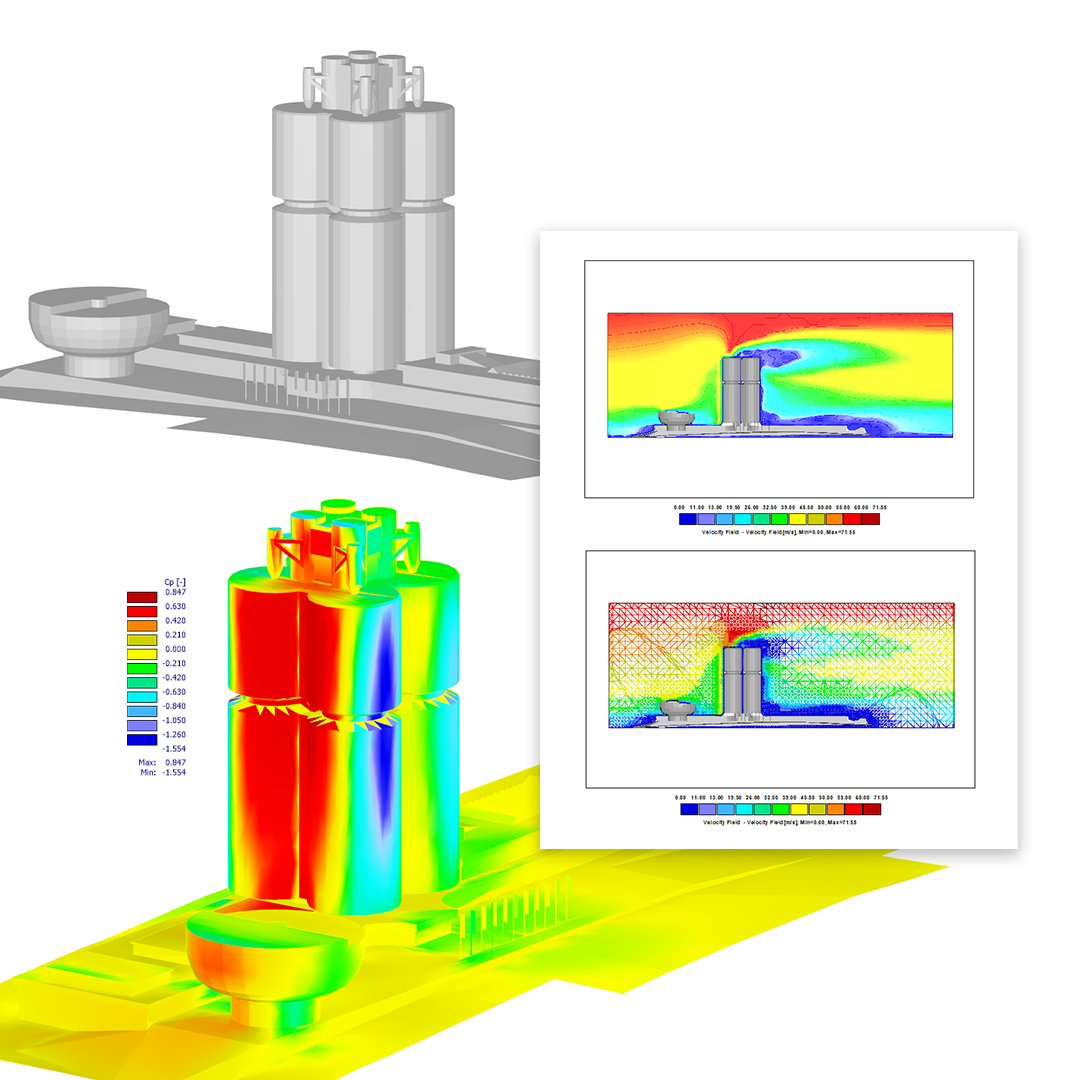 RWIND 2, vyvinutý ve spolupráci s firmami PC-Progress a CFD Support, lze použít jako samostatnou aplikaci nebo integrovat do programů RFEM a RSTAB pro kompletní statickou analýzu a posouzení.