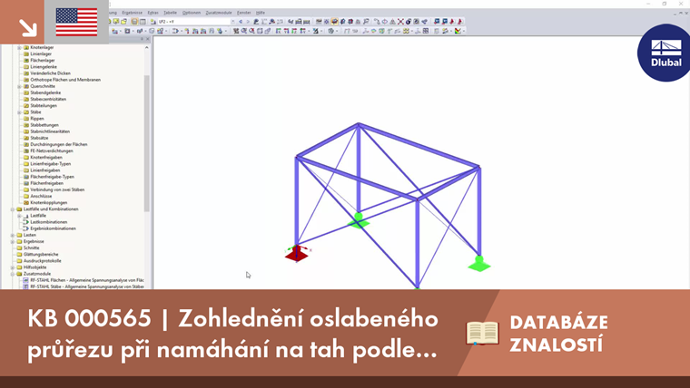 Standardně se posouzení únosnosti v tahu v přídavném modulu provádí pouze se zohledněním plastické únosnosti neoslabeného průřezu (rovnice 1). Posouzení podle rovnice 2 lze aktivovat výběrem možnosti "Plocha oslabeného průřezu" pro pruty ve vstupním okně "Parametry - pruty". Plochu oslabeného průřezu Anet je možné zadat pro začátek prutu (x = 0) a pro konec prutu (x = l). Pro zadání stejné oslabené průřezové plochy pro několik prutů současně se doporučuje použít funkci „Vstup přiřadit prutům č.“.