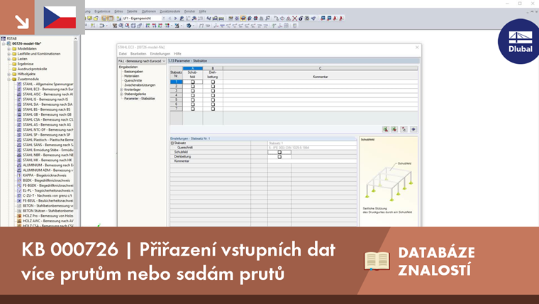 Za tímto účelem je nejdříve potřeba v dolní části tabulky Nastavení zaškrtnout políčko "Vstup přiřadit prutům č.:" a vybrat příslušné pruty, sady prutů, uzlové podpory nebo klouby na koncích prutů (Obrázek 01).