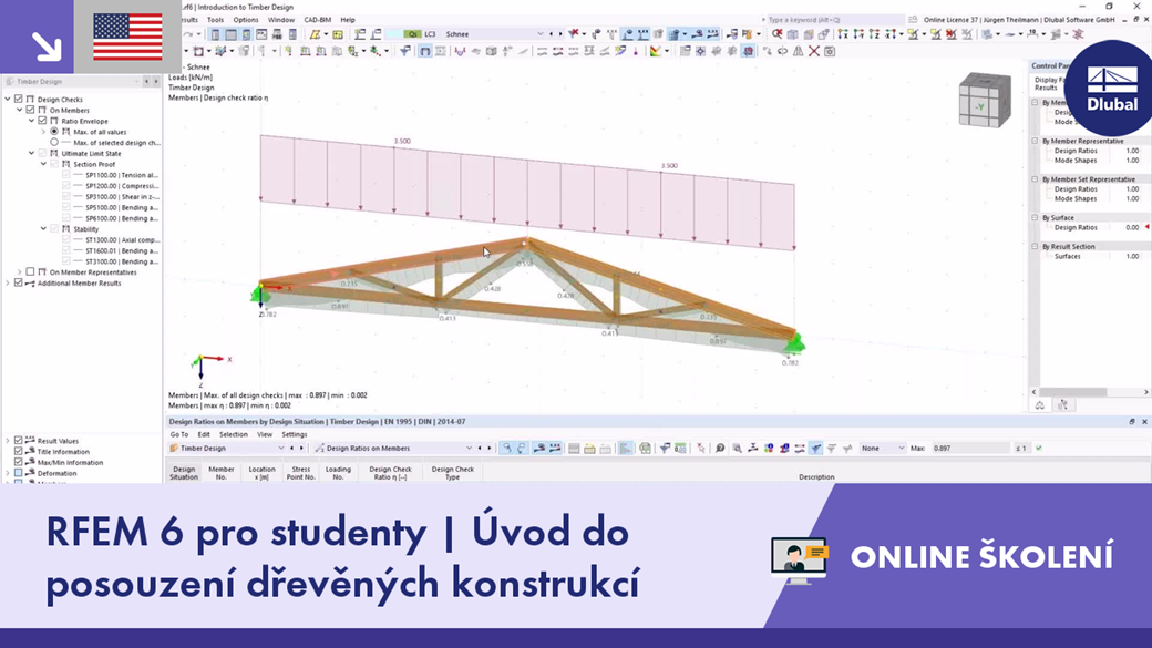 Bezplatné online základní školení v programu RFEM 6 pro statické výpočty MKP | Úvod do navrhování dřevěných konstrukcí pro studenty