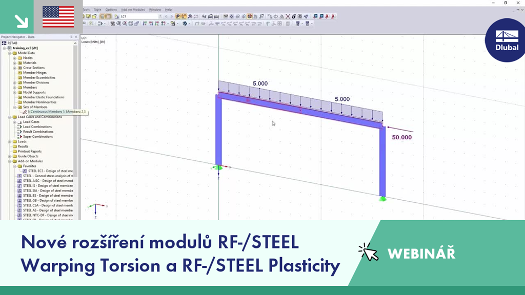 - Analýza stability podle EN 1993-1-1 s novými modulovými rozšířeními RF-/STEEL Warping Torsion a RF-/STEEL Plasticity