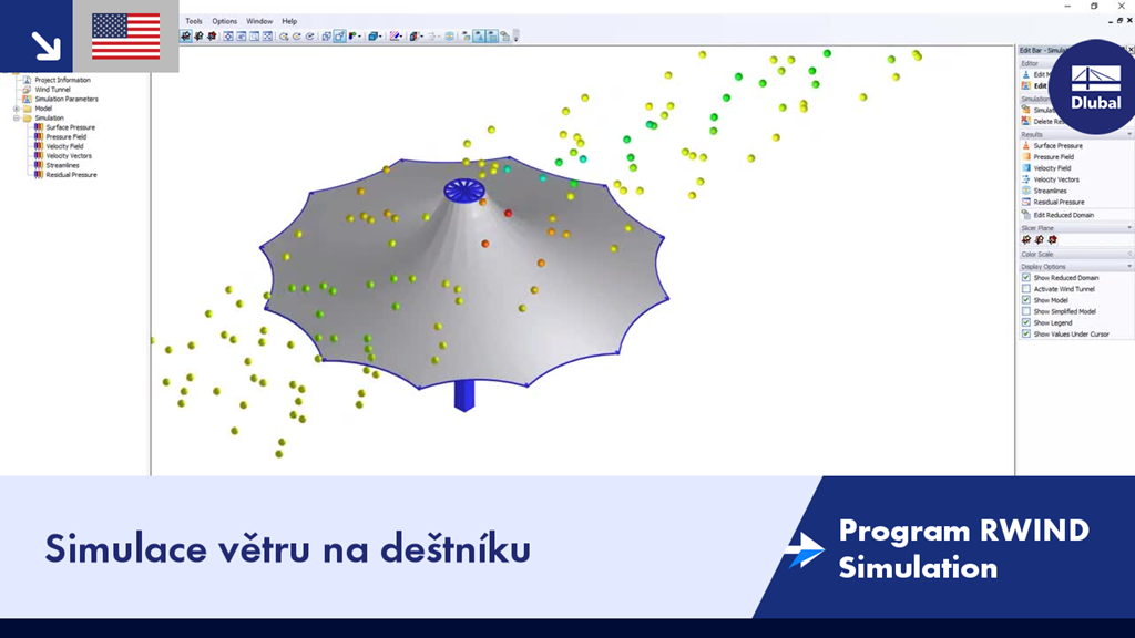RWIND Simulation je samostatný program pro CFD simulaci proudění větru okolo budov nebo jiných objektů a generování zatížení větrem, tedy sil, které na tyto objekty působí. Tlaky a sání větru lze importovat jako zatížení do programu pro statické výpočty RFEM nebo RSTAB.
