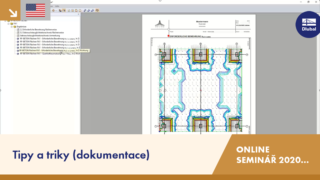 Ve čtvrté části záznamu Dlubal online semináře vám Paul Kieloch předvede grafickou dokumentaci výsledků z modulu RF-CONCRETE Surfaces na příkladu základové desky.