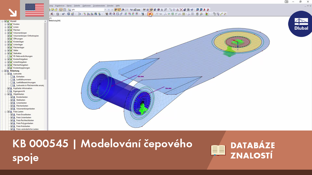 Nejjednodušší způsob pro modelování čepového spoje v programu RFEM 5 je definovat bod ve středu otvoru a poté jej připojit pomocí vnitřních prutů k ploše.