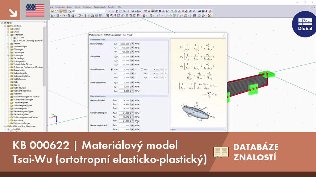 S ortotropním elasticko‑plastickým materiálovým modelem lze v programu RFEM 5 počítat a vyhodnocovat tělesa s plastickými materiálovými vlastnostmi podle takzvaného Tsai‑Wuova kritéria. Tsai‑Wuovo kritérium zveřejnili Stephen W. Tsai a Edward M. Wu pro rovinnou napjatost v roce 1971.