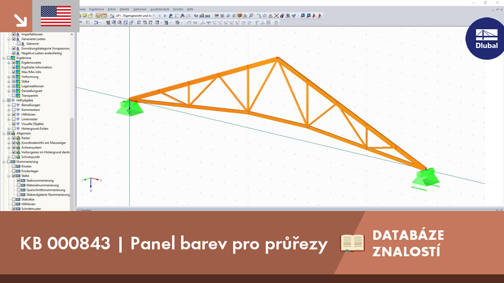 Pro rychlý přehled použitých průřezů můžete zobrazit pruty v barvě odpovídajícího průřezu. Pravým tlačítkem myši v pracovním okně vybereme z místní nabídky možnost "Barvy v grafice podle" → "Průřezů". V aktuální verzi programu můžete použít panel s nastavitelnou stupnicí barev.