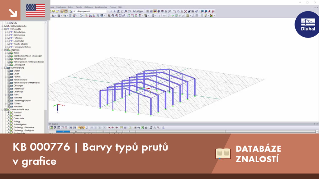 V programech RFEM a RSTAB je nyní možné rozlišit použité typy prutů také vizuálně pomocí barev. Tato možnost byla integrována do navigátoru "Zobrazit".