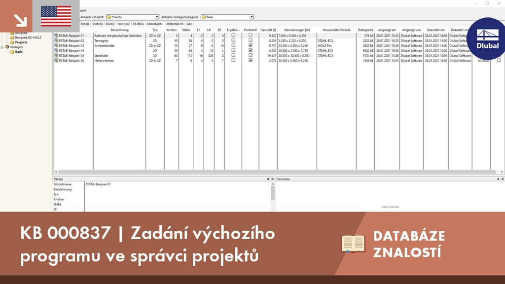 Síťový správce projektů spravuje projekty všech aplikací Dlubal na jednom centrálním místě.