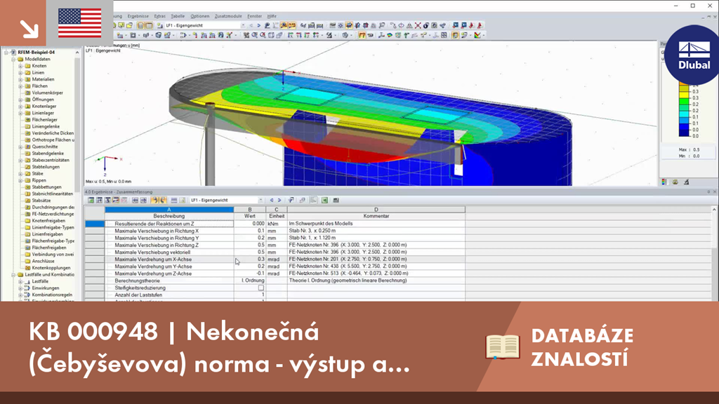 V tabulce "4.0 Výsledky - souhrn" se na konci výsledků zatěžovacího stavu zobrazí nekonečná (Čebyševova) norma. Tato norma slouží k odhadu největšího vlastního čísla systému. Největší vlastní číslo systému se stanovuje numericky, protože přesné stanovení může být časově velmi náročné.