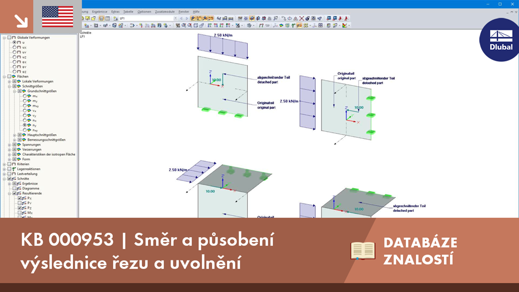 V programu RFEM je možné nechat zobrazit výslednice řezu nebo uvolnění. Tento příspěvek vysvětluje, na kterou část plochy řezu působí. Nejjednodušší by bylo vztáhnout výslednice na jednu stranu řezu. Nicméně vzhledem k tomu, že řez může probíhat několika plochami s různými lokálními souřadnými systémy, není stanovení pomocí strany řezu možné.