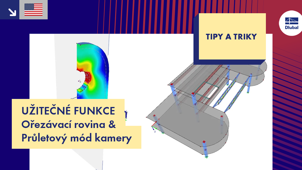V tomto videu ukazujeme dvě velmi zajímavé funkce v programech Dlubal Software. Zaprvé ořezávací rovinu, která umožňuje vložit do modelu rovinu řezu pro zobrazení výsledků na určitých místech, a zadruhé průletový mód kamery, který umožňuje průlet modelem konstrukce ve 3D.