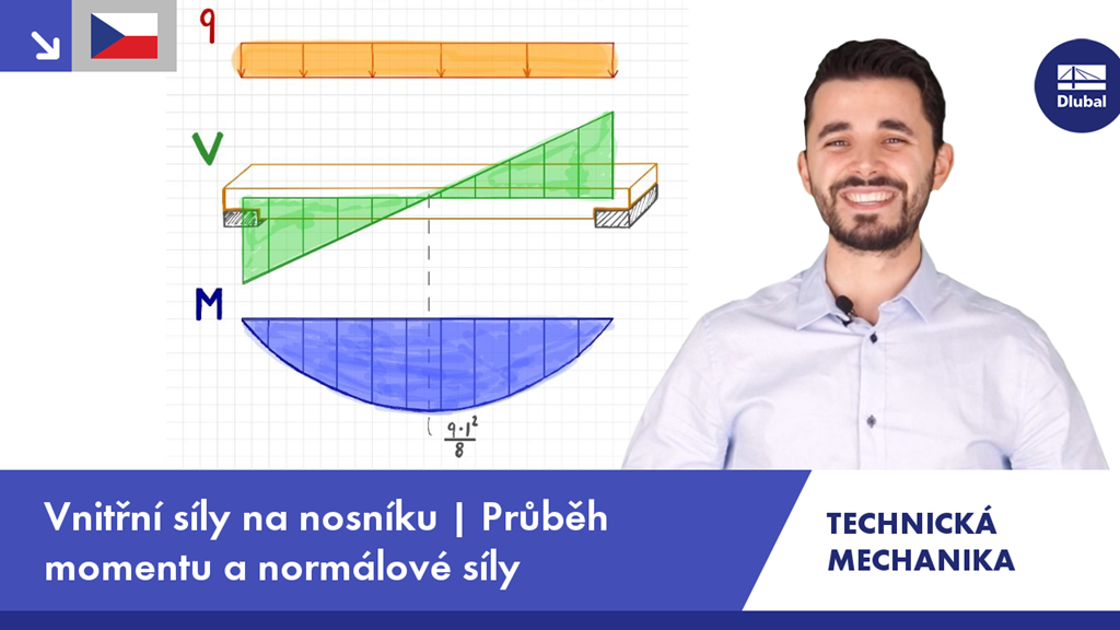 V tomto ani ne 4minutovém videu objasníme obecný postup stanovení vnitřních sil na nosníku.
