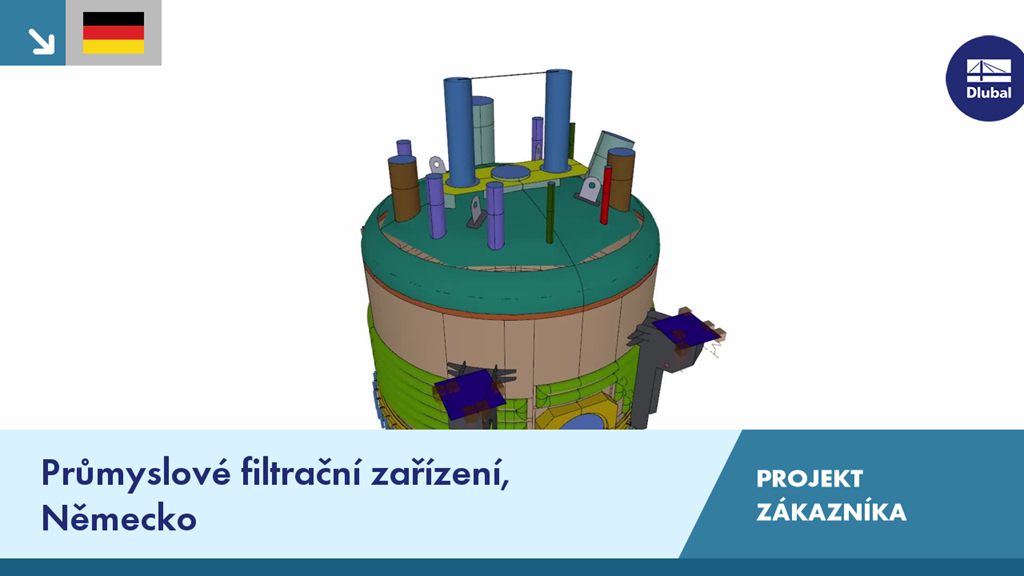 Projekt pro navržení filtračního zařízení a sušičky včetně míchacího stroje vyžadoval kompletní analýzu napětí a deformací v programu RFEM. Mimořádnou návrhovou úlohu představovalo náročné modelování konstrukce obsahující 1 424 ploch, 158 těles a 425 prutů.