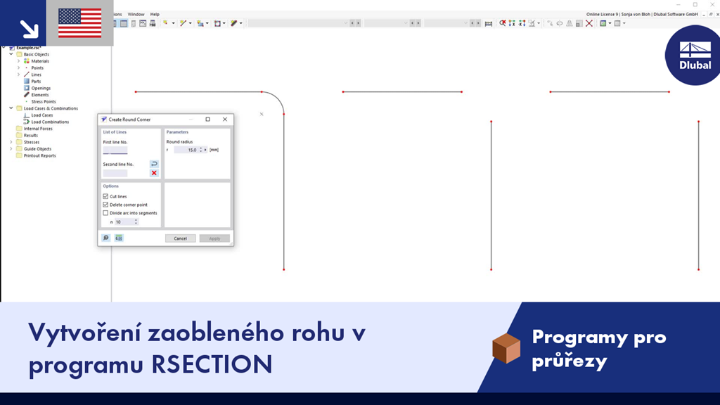 V tomto videu ukazujeme, jak lze v programu RSECTION vytvářet zaoblené rohy.