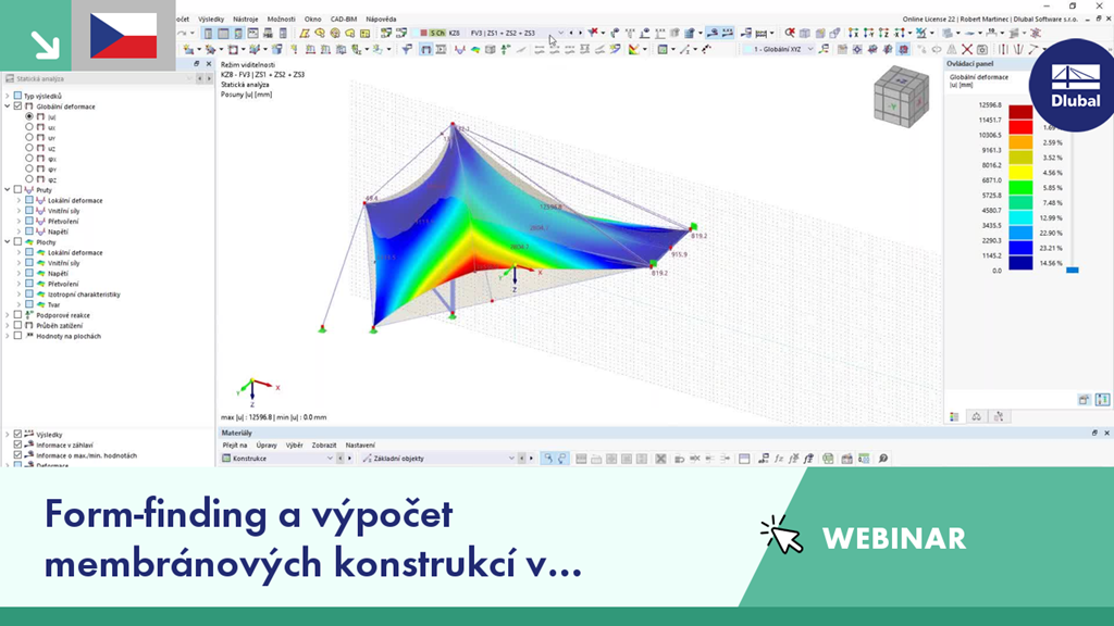 V tomto webináři Vám předvedeme, jak lze v programu pro statické výpočty RFEM 6 modelovat a počítat membránové konstrukce.