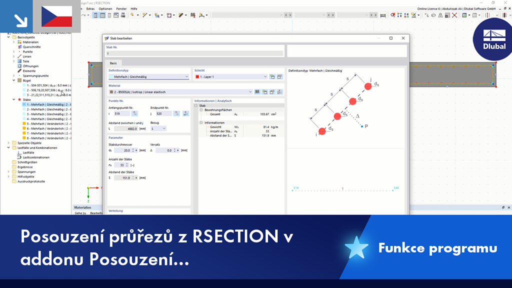 V addonu Posouzení železobetonových konstrukcí můžete posuzovat libovolné průřezy z RSECTION. Betonové krytí a smykovou a podélnou výztuž zadáte přímo v RSECTION.
