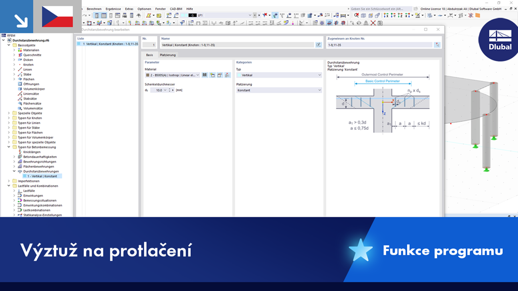 V addonu Posouzení železobetonových konstrukcí máte možnost zadat navrženou svislou výztuž proti protlačení. Ta se pak zohlední při posouzení na protlačení.