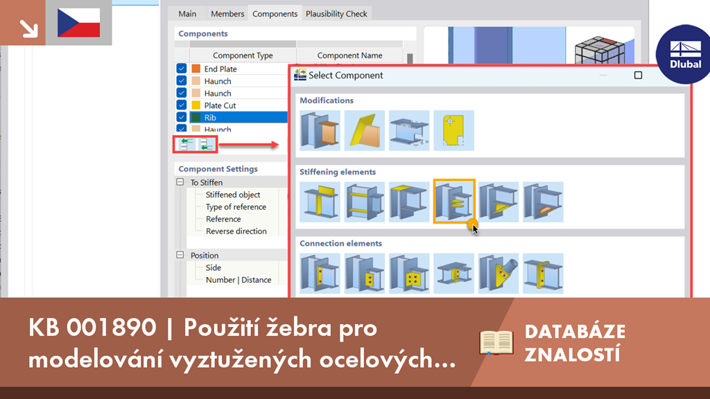 V tomto videu si ukážeme, jak lze zadat podélná žebra na plechu prutu pomocí komponenty „Žebro“ v addonu Ocelové přípoje.