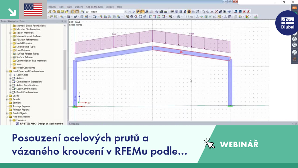 Posouzení ocelových prutů a vázaného kroucení v programu RFEM podle AISC 360-16