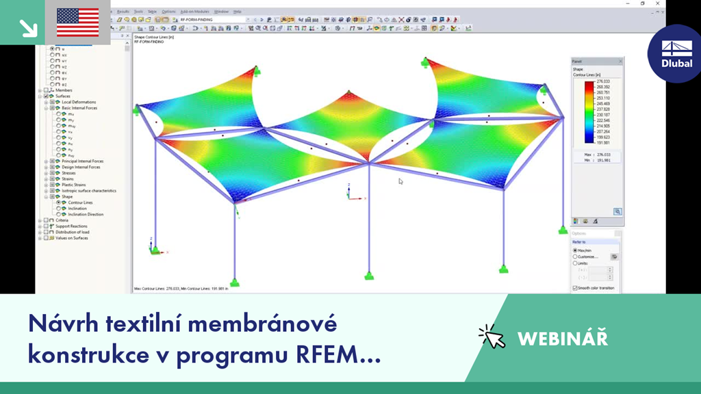 - Textile membránová konstrukce v modulu RF-FORM-FINDING a RF-CUTTING-PATTERN