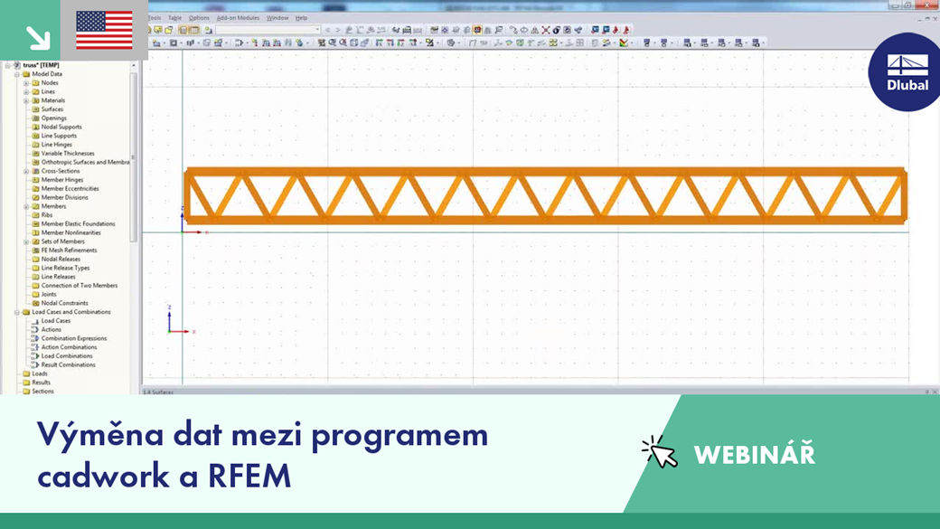 - Výměna dat mezi cadwork a RFEMem na modelech prutové a plošné konstrukce