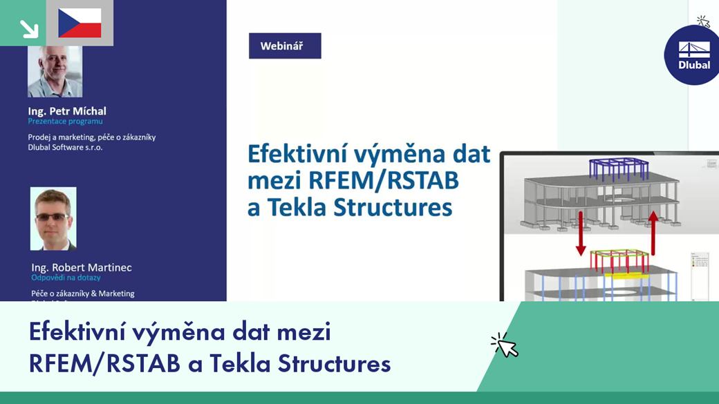 Tento webinář je zaměřený na přenos informací mezi programy Dlubal a Tekla Structures, kterou vyvíjí společnost Construsoft. Dozvíte se jak vytvořit analytický model v Tekle a jeho následné přenesení a výpočet v programu RFEM. Také zpětný přenos informací do Tekly a aktualizaci modelu.