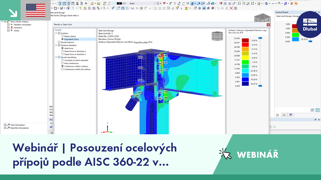 Bezplatný webinář | Posouzení ocelových přípojů podle AISC 360-22 v programu RFEM 6 (USA)