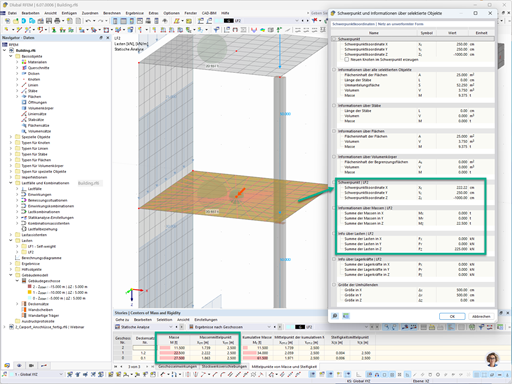 Addon Model budovy umožňuje zobrazit výsledky pro jednotlivá podlaží a při statickém výpočtu zohlednit chování všech podlaží jako hmot. Při analýze spektra odezvy lze v tabulce zobrazit součinitele citlivosti pro vodorovné směry každého podlaží.