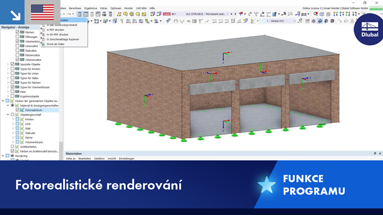 Podrobné nastavení pro zobrazení strukturálních objektů a zatížení můžete provést v Navigátor - zobrazení v kategorii Rendering.