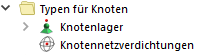 Kategorie Typy pro uzly spravuje speciální vlastnosti uzlů, jako jsou podpory a zahuštění sítě prvků. V navigátoru jsou uvedeny jako podkategorie. V tabulce jsou údaje uspořádány v příslušných záložkách.