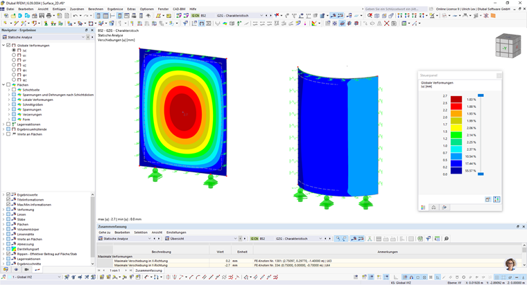 Wenn Sie das Bemessungs-Add-On aktiviert haben, erweitert sich die Benutzeroberfläche um neue Einträge im Navigator, den Tabellen und den Dialogen. Damit sind die Parameter der Glasbemessung vollständig in die Benutzeroberfläche des Programms RFEM integriert.