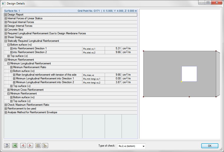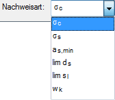 Die Bemessungsdetails sind von der gewählten Nachweisart abhängig. Die Steuerung der angezeigten Ergebnisse erfolgt über die Liste unten im Dialog.
