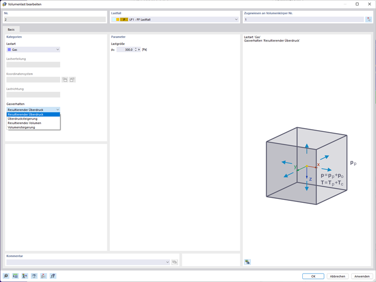 Volumenlasten der Lastart Gas können anhand verschiedener Gasverhalten definiert werden.