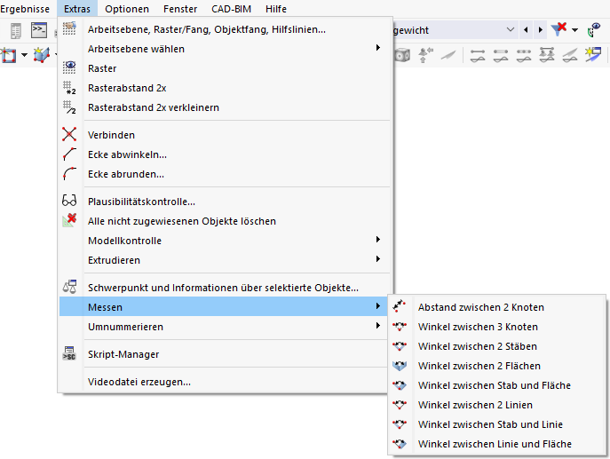 Wenn Sie bei der Eingabe des Modells die Geometrie überprüfen wollen, brauchen Sie keine Bemaßungen setzen. Das Menü Extras bietet verschiedene Funktionen zum Messen von Abständen und Winkeln an.