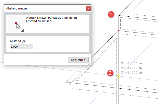 Auch in einigen Dialogen steht eine Messfunktion zur Verfügung, mit der Sie den Abstand für einen Eingabeparameter grafisch bestimmen können. Klicken Sie hierzu auf die Schaltfläche