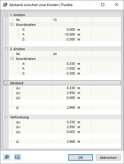 Wenn Sie das letzte Objekt festgelegt haben, erscheint ein Dialog mit den Koordinaten der Referenzpunkte und den Abstands- oder Winkelangaben.