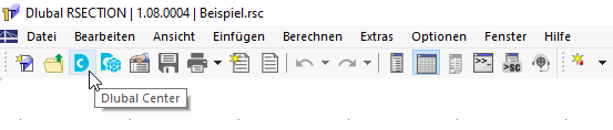 Sie können das Dlubal Center mit der Menüfunktion Datei → Dlubal Center aufrufen. Alternativ verwenden Sie die Schaltfläche