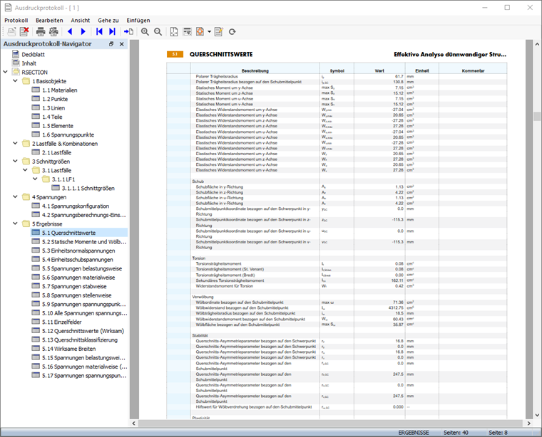 Ehe die Eingabedaten und Ergebnisse zum Drucker geschickt werden können, müssen sie für die Ausgabe aufbereitet werden. Dies erfolgt im sogenannten Ausdruckprotokoll. In dieser Druckvorschau legen Sie die Daten fest, die Sie für die Dokumentation benötigen. Sie können auch Grafiken, Erläuterungen, Scans und PDFs in das Ausdruckprotokoll integrieren.