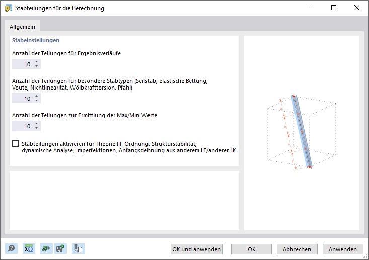 Stabteilungen aktivieren für Theorie III. Ordnung, Strukturstabilität, dynamische Analyse