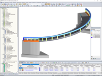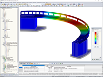 Die Fuß- und Radwegbrücke Freischütz ist ein im Grundriss gekrümmter Vierendeelträger, der den Riegel eines integralen Rahmenbauwerkes darstellt. In RFEM bildete VIC die Haupttragkonstruktion der Stahlbrücke mit Stäben aus Hohlkastenprofilen ab, die Fundamente mit Volumenelementen aus Beton. Die Stützweite der Brücke beträgt ca. 34 m. Als Verkehrslast mussten Fußgängerlasten sowie die Belastung aus einem Sonderfahrzeug angesetzt werden.
