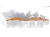 In einem ersten Schritt wurde die Stabstruktur für das Dach unter Berücksichtigung der komplexen Geometrie und der wesentlichen Abmessungen in RFEM modelliert. Dann war es notwendig, eine Analyse der Lasten, die auf die Struktur angesetzt werden, durchzuführen. Dazu wurden am Modell die ständigen Lasten (Gewicht des Stabwerks, Anbauteile etc.) und veränderlichen Lasten (Schneelasten, Windlasten etc.) definiert.