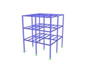 3D Modell eines Stahlbaugerüsts, wie dies z.B. im Industriebau verwendet wird. Das Modell beinhaltet Lasten und Lastfallkombinationen.