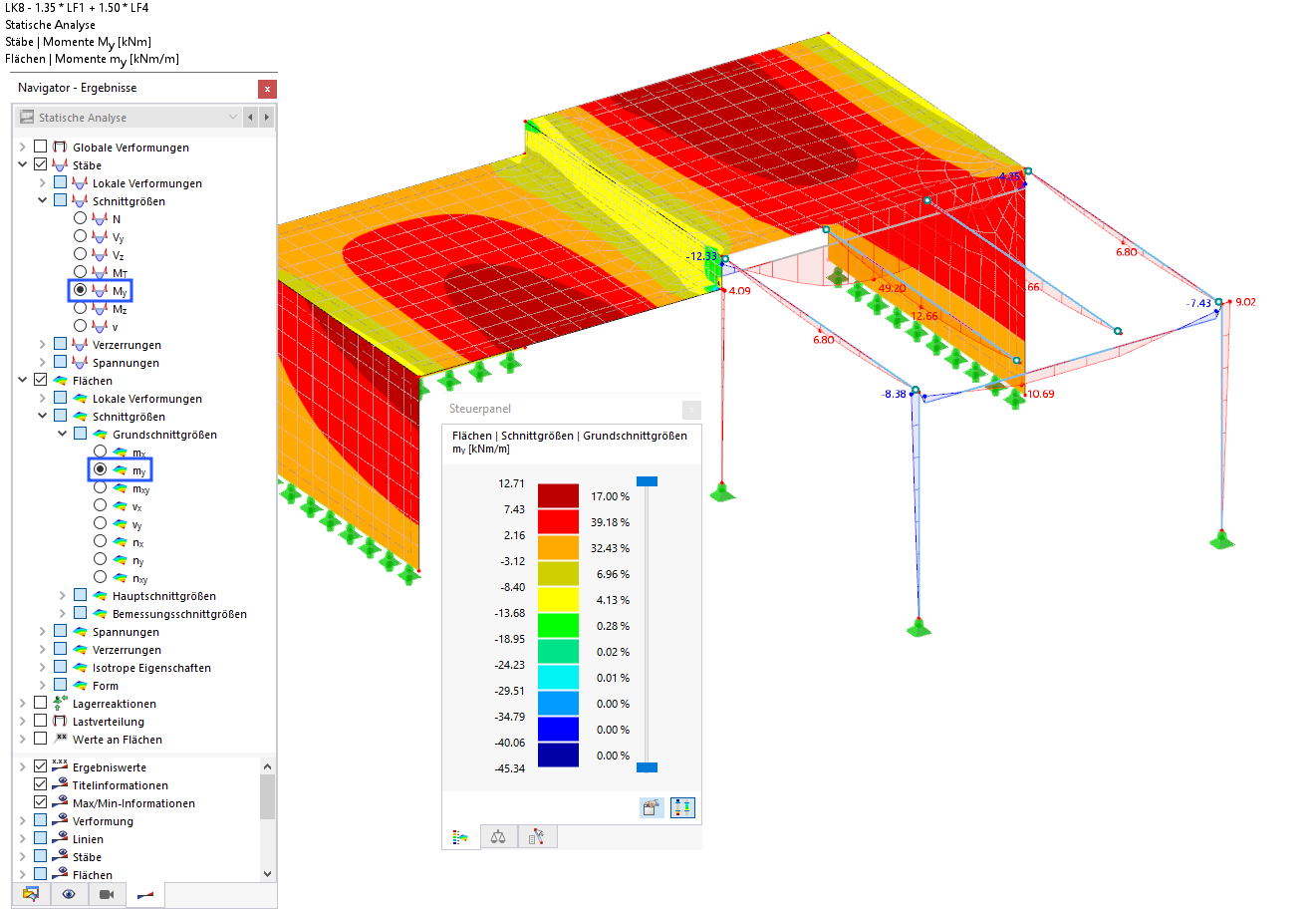 Biegemomente der Bühnenstäbe und Plattenflächen