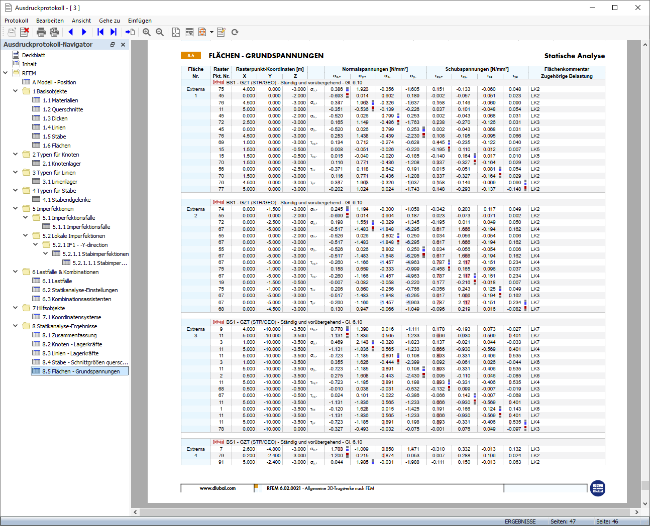Extremwerte der GZT-Bemessungssituation flächenweise