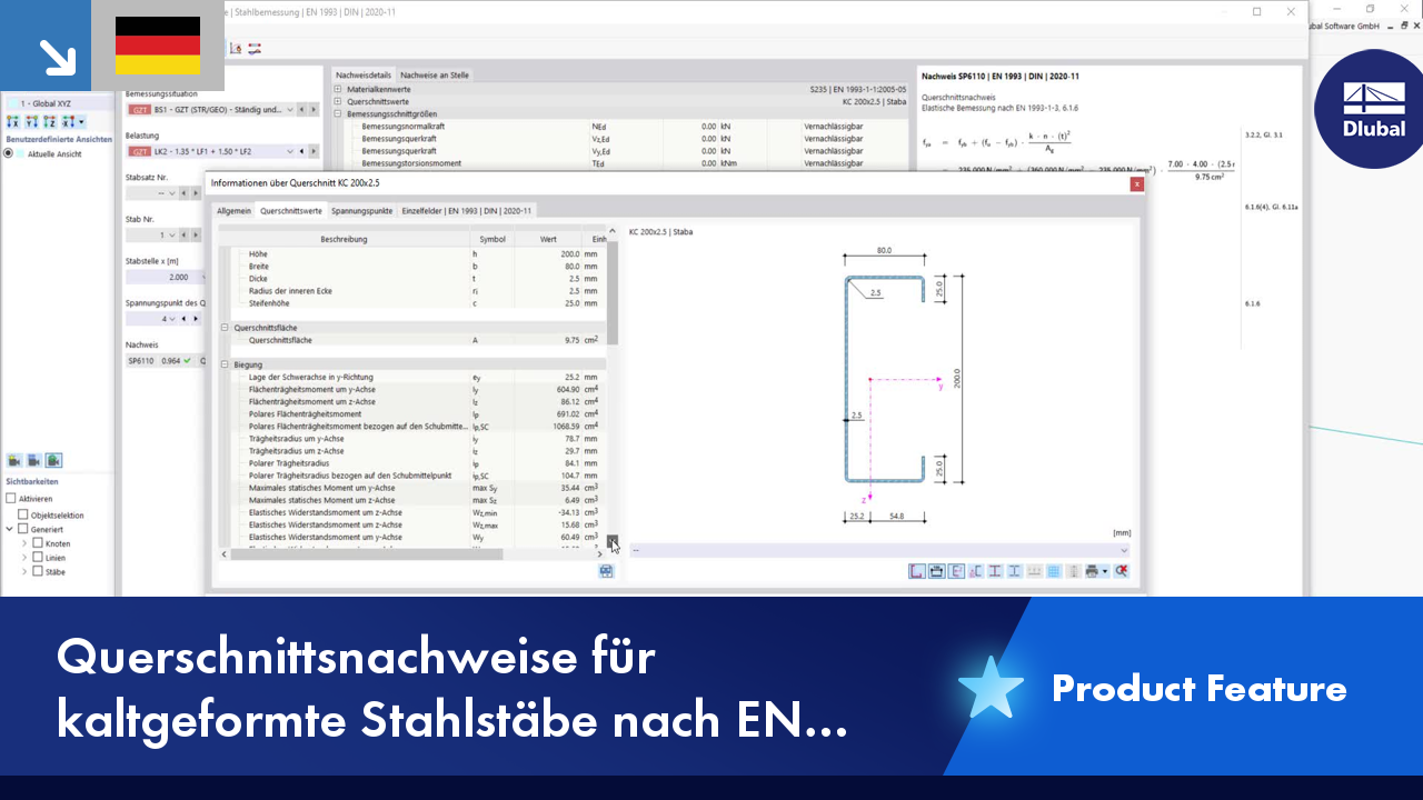 Querschnittsnachweise für kaltgeformte Stahlstäbe nach EN 1993-1-3 Product Feature